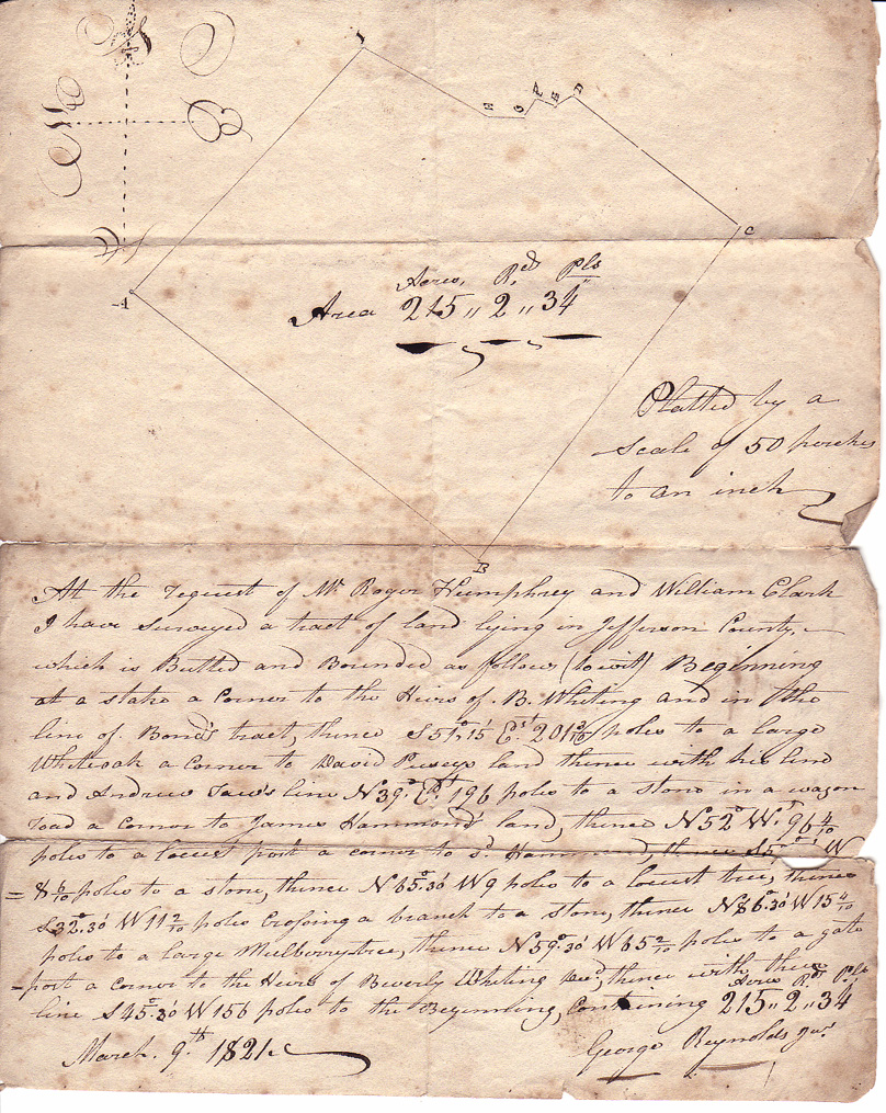 Rock House Farm on the Bull Skin - 215 acres James Roper bought this 215 acres tract of land called the "Rock House Farm" in 1823 from the heirs of Roger Humphrey. (See original plat) It was devised to Washington Albert Roper by last will and testament of his father James Roper dated November 11, 1865, Jefferson County, WV, Recorders Will book, page 70 - 78. (note: other tracts of land were devised to W. A. Roper in James Ropers Will) Item,- I desire to my son Washington Albert, all of my stone - house tract of land, lying on the North fork of Bullskin, and containing two hundred and fifteen acres, be the same more or less, and including also a lot of land adjoining, which I purchased from Whiting's heirs, and which lies between the original Stone house tract, and the Berryville Turnpike, on the north corner; also one hundred and ten acres of my larger tract of land situated on the south east side of the Shenandoah river: to be laid off in the South East corner of said tract adjoining the lands of Backhouse, Smith and others, in the manner hereinafter specially, directed: also the lot of land purchased by by [sic] me from, William Clarke's heirs lying on the north side of Evitt's run, adjoining the lands of Lack's heirs, Lacklands heirs &, and containing the twenty one acres, be the same more or less, adjoining the home farm, and the lands of Lacklands heirs; which lot is divided from the home farm by a chestnut rail fence; which however is to belong to the home farm; - for and during his natural life and no longer; and at his death, I devise the same, in equal portions, to any son or sons of his, born in lawful wedlock, that may be then living, or of which his wife may then be ensient.- Said son or sons to take as purchasers, and not by way of entail.- and in default of there being no such son or sons living as aforesaid, then, in equal portions to my two sons James Michael and Washington Albert and the survivor of them for and during the natural lives of life of my said two sons should be living at the death of my said son Washington Albert, he having died without male children living as aforesaid, then to my heirs at law in fee simple -(See Will of James Roper) The original plat for this tract of land was drawn in 1821 for Roger Humphrey (see plat above). In 1823 the property was conveyed by heirs of Roger Humphrey to James Roper by a series of bonds dated 1826 - 1828. On May 31, 1828 James Roper received a release for the property. A new plat was drawn on April 13, 1829 Humphrey to Roper (see plat to right) being the final transaction. To see all transaction go to Deed page it will be referred to as the Rock House farm or farm on the Bull Skin. (Note: The original property line as seen through the early 19th century plats and both S.H. Brown maps 1852 & 1883 can still be seen today from satellite shown on google map.
