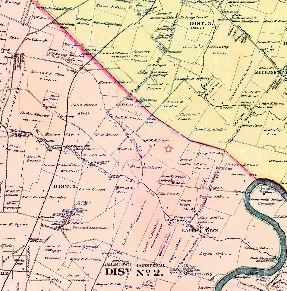 Roper Farms & Properties in Jefferson County, (West) Virginia A red star indicates the property described on each of the 1852 & 1883 Jefferson County map fragments.