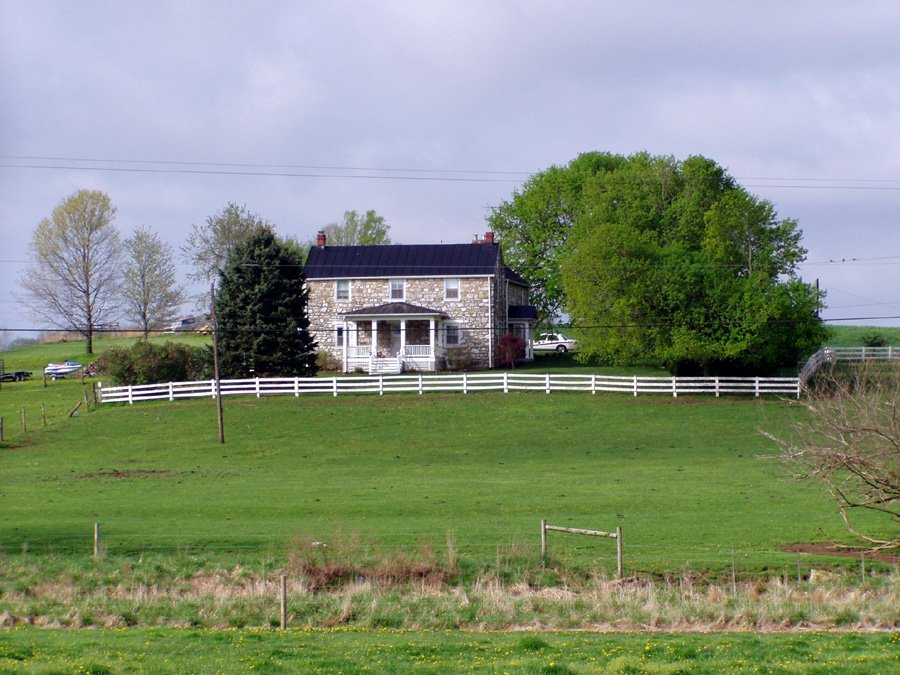 or sons living as aforesaid; then, in equal portions, to my sons James Michael and Washington Albert, and to the Survivor of them, for and during their natural lives or life, and no longer; and in the event that neither of my said two sons should be alive at the death of my said son William Henry Harrison, he having died with out leaving male children as aforesaid, then to my heirs at law in fee simple. This land remained in the family until the late circa 1930's The farm is now owned by a large limestone quarry operation; it will be mined for gravel in the near future. This photo was taken summer of 2005. The home has been abandoned for many years; it's not yet determined if this was the original dwelling. Another point of interest: When Nicholas first acquired the property it bounded on the Old Warm Spring Turnpike. This road would have been a main thoroughfare to "Bath" now known as "Berkeley Springs" in Morgan County, WV.