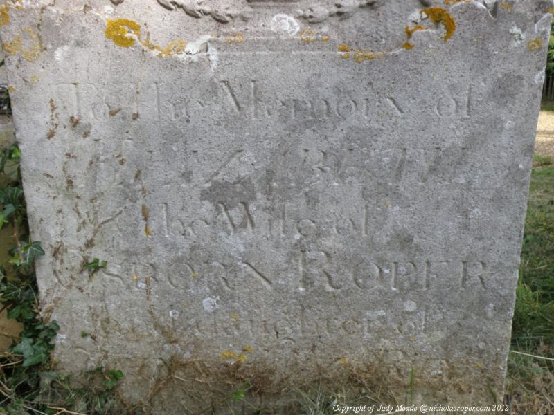 In the Memory of Elizabeth the wife of Osbourn Roper and daughter of John & Elizabeth Rix February 2, 1747 age 62