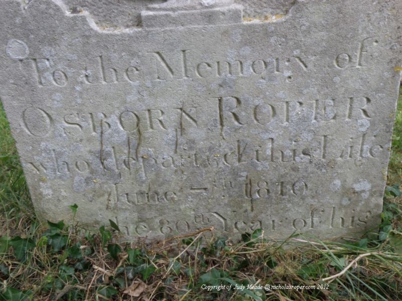 Osborn was the 4th child of James and Hannah Roper (James 6th) and outlived all his siblings except for Nicholas.